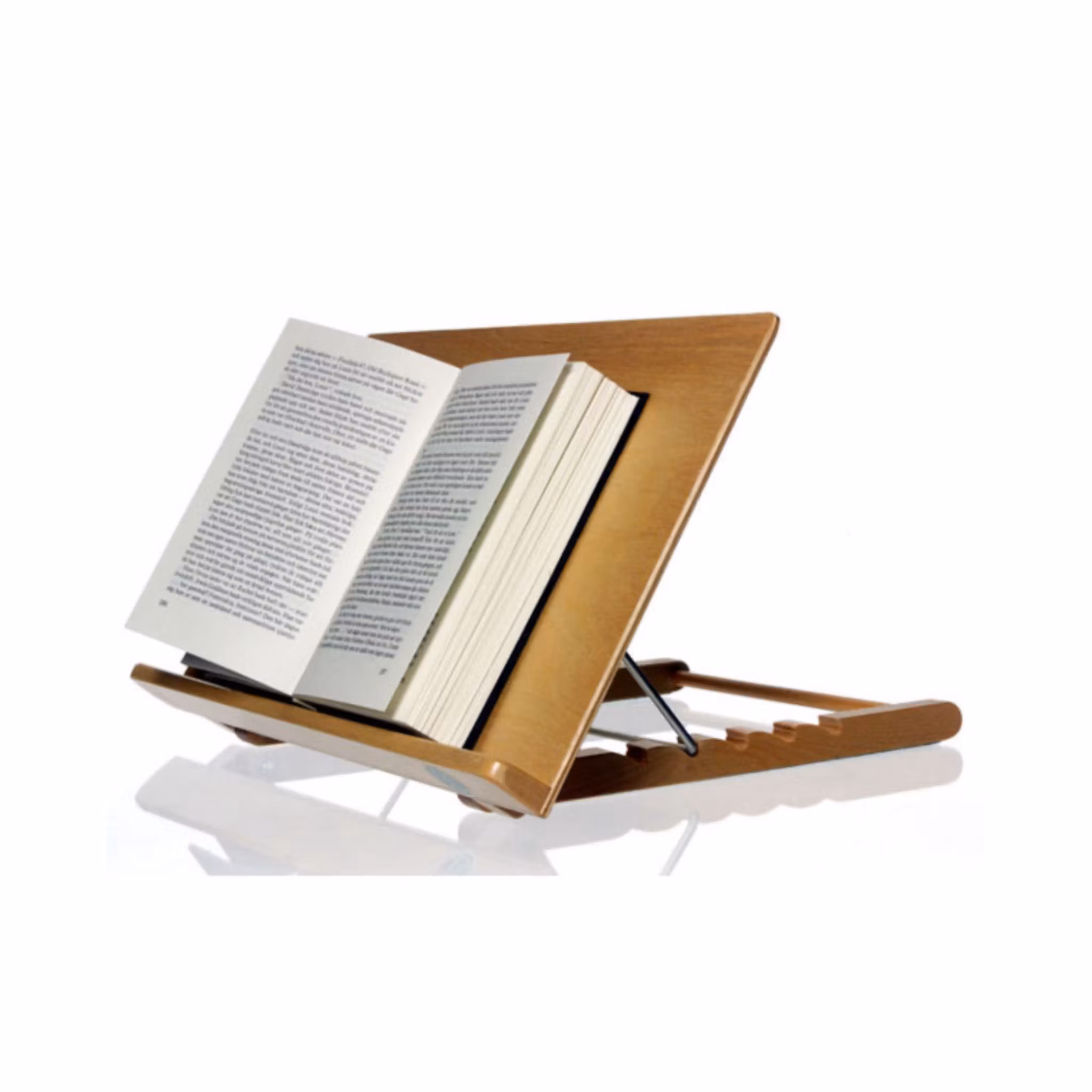 Detta bokstöd i trä är perfekt för dig som vill läsa eller använda surfplatta och mobil utan att behöva hålla i dem. Särskilt användbart vid skador eller nedsatt styrka, då det ger möjlighet till ökad självständighet.